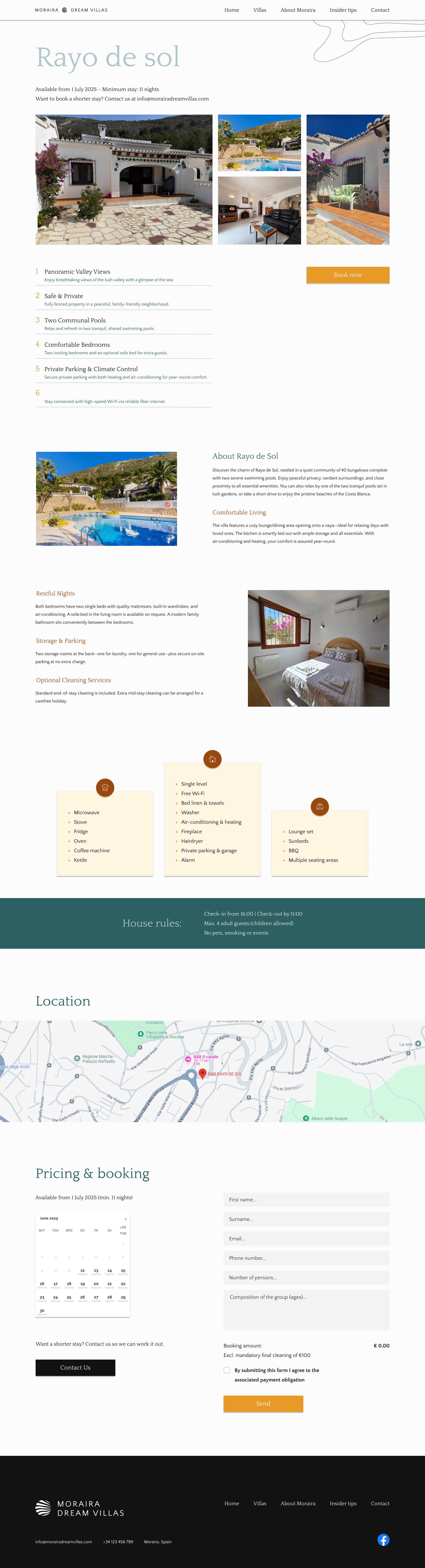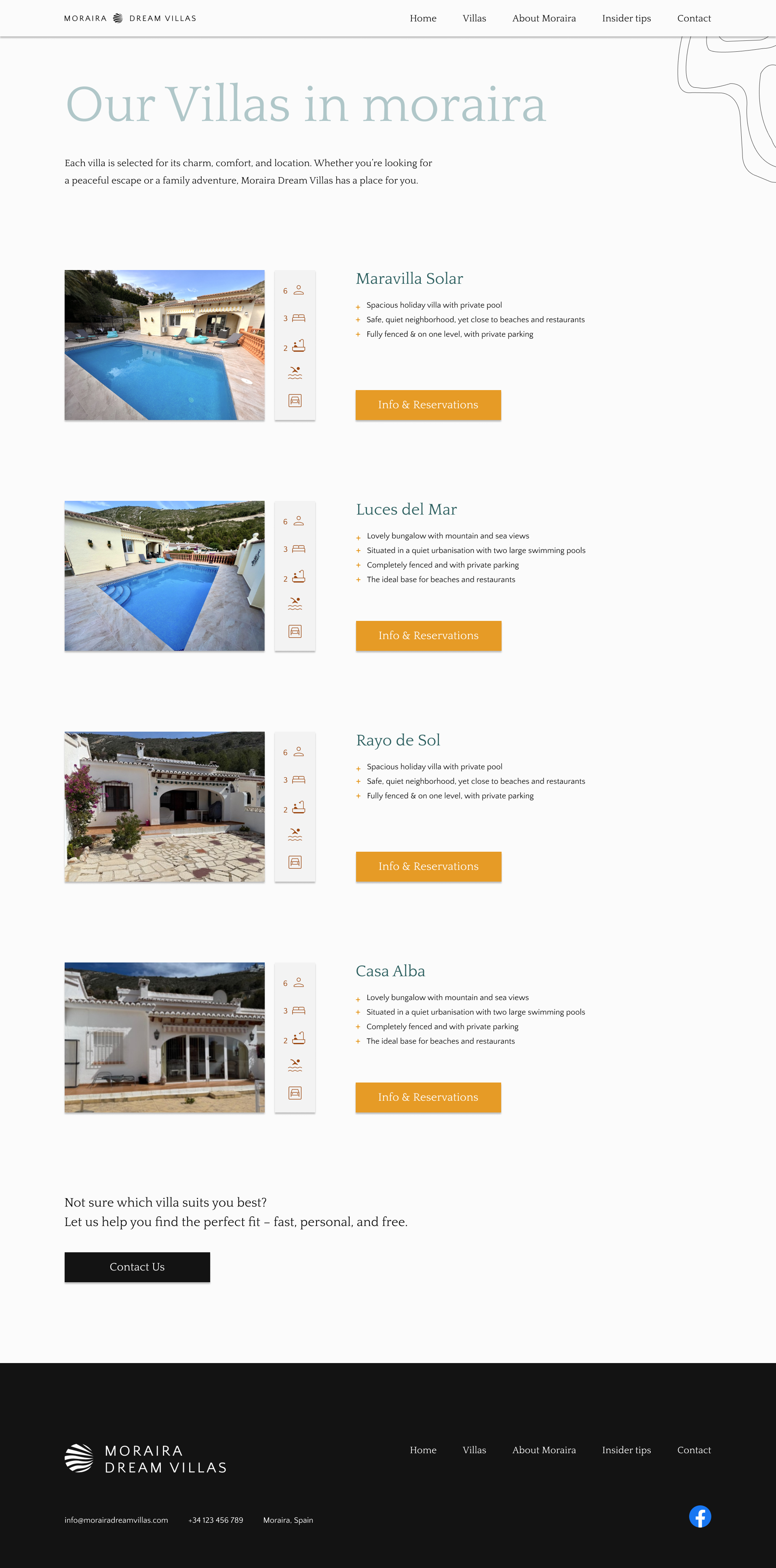For Moraira Dream Villas, I developed a complete visual identity that translates the relaxed, Mediterranean atmosphere of Moraira into a strong and recognizable brand. The project included a logo redesign, a comprehensive brand guideline, and various branded materials. In addition to designing the new website, I created business cards, vehicle graphics, and rental signage for the villas. By applying one consistent visual language across both digital and physical touchpoints, the result is a professional and cohesive brand presence.