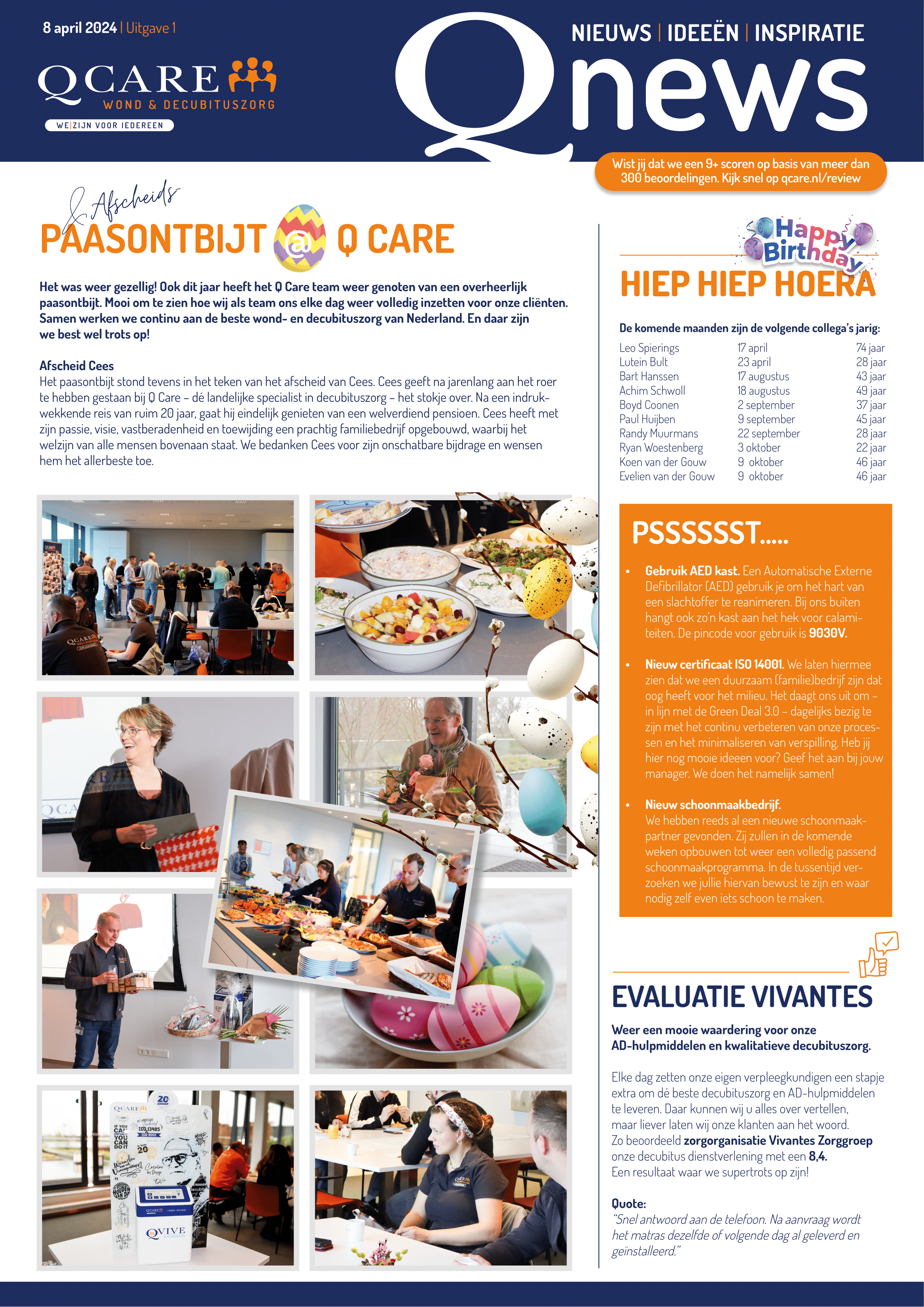 During my five-month internship at Q Care, I worked within the marketing department on a variety of design and communication tasks. My responsibilities included designing newsletters, flyers, and brochures, maintaining the website in WordPress, creating icons and developing social media content. This internship allowed me to gain practical experience in brand consistency, digital communication, and working within a professional marketing team.